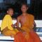 for this purpose. At one point a pickup cruises past us crammed with monks,