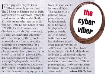 An article and picture of Cass for 'India Today', the 'Newsweek' of India