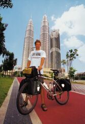 Cass in Long Ride Home T shirt, Petronas Twin Towers, Kuala Lumpur